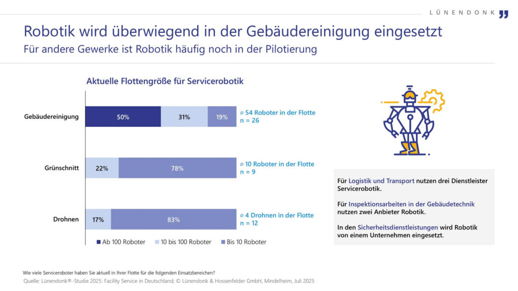 Trotz verhaltener Konjunktur zeigt sich laut neuer Lünendonk-Studie der Markt für Facility Services in Deutschland weiterhin wachstumsstark. Das Marktvolumen stieg im Jahr 2024 um 3,2 % auf 66,9 Mrd. Euro. Die 73 in der Studie 2025 analysierten Unternehmen verzeichneten ein durchschnittliches Umsatzwachstum von 6,2 Prozent. Besonders stark entwickelten sich die zehn nach Umsatz führenden Dienstleister […]